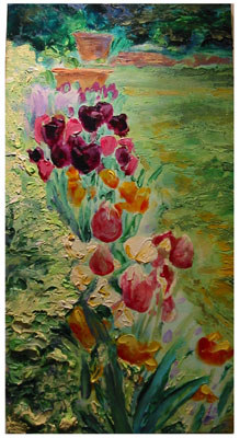 "Tulips on the Side" 48" 24" 1998, acrylic on canvas
